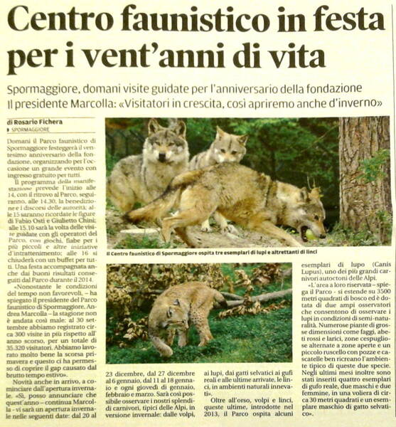 Centro faunistico in festa per i vent'anni di vitaSede: P.zzale Paganella, 3 38010 ANDALO (TN)